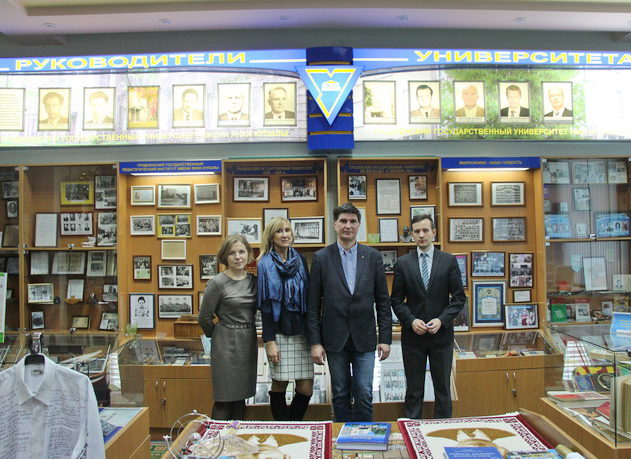 Юлия Андреева является главным редактором издательского центра «Логос», членом Редакционного совета электронного научно-методического журнала ГрГУ им. Янки Купалы «Университет образовательных инноваций». В Гродненский государственный университет имени Янки Купалы гостья прибыла в рамках сотрудничества и взаимодействия с кафедрой журналистики факультета Истории, коммуникации и туризма, редакцией электронного научного журнала «Университет образовательных инноваций». До посещения музея истории, профессор приняла участие в Научно-методическом семинаре «Стратегия профессионального успеха в журналистике» круглом столе «Психологический портрет современной медиа-аудитории в России и Беларуси: новый тип восприятия в информации». Экскурсионный обзор главного корпуса начался для коллеги из Казани с фотогалереи наиболее старинных и известных историко-архитектурных объектов города Гродно. Продолжился обзор истории Купаловского вуза в галерее руководителей университета и экспозиции в честь Янки Купалы. Далее маршрут продолжился в экспозиции “Ад гімназіі да ўніверсітэта”, где гости познакомились с историческим наследием системы образования Гродненщины и Беларуси в целом, узнали о достижениях известных выпускников университета и развитии вуза с 1940 по 2017 годы.